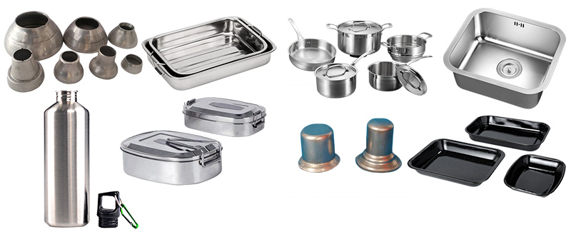 5)适用材质有不锈钢、碳钢、铜材、铝板及复合材料等,最小壁厚≤0.2mm,最大壁厚≥5mm,拉深产品直径最大可达2000mm;